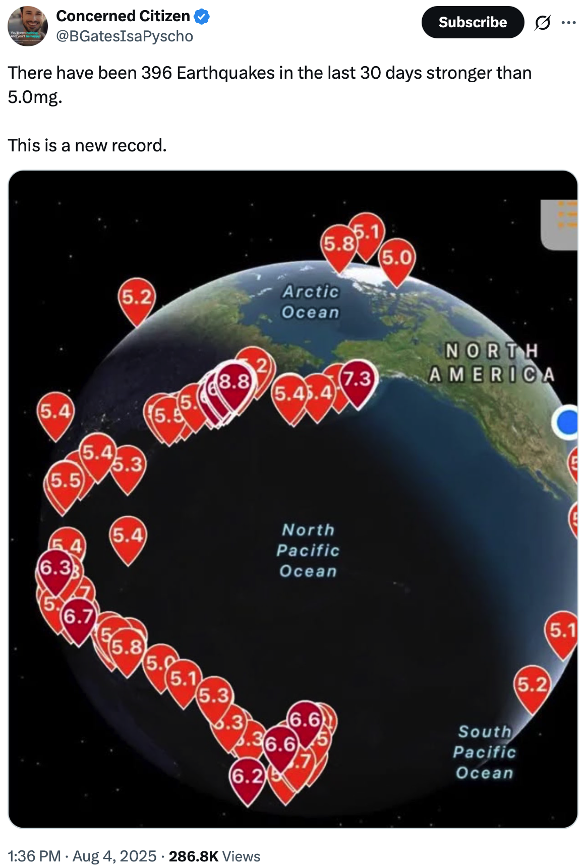 Therefore, while the reported 396 magnitude 5+ earthquakes in the last 30 days is significantly higher than the average, it is important to note that global earthquake activity tends to cluster, meaning there can be periods of higher activity followed by calmer periods, still within the realm of normal geophysical variation.